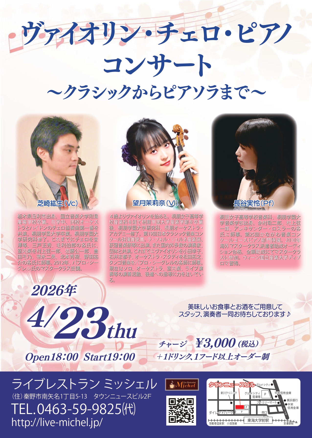 ヴァイオリンとチェロ、ピアノのトリオによるクラシックライブ!